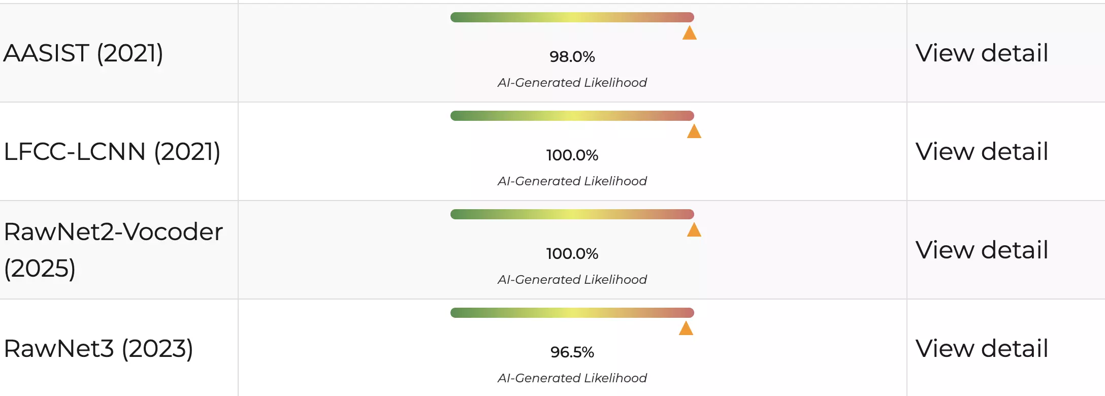1) AI Deepfake Voice Detection Tool Results:
